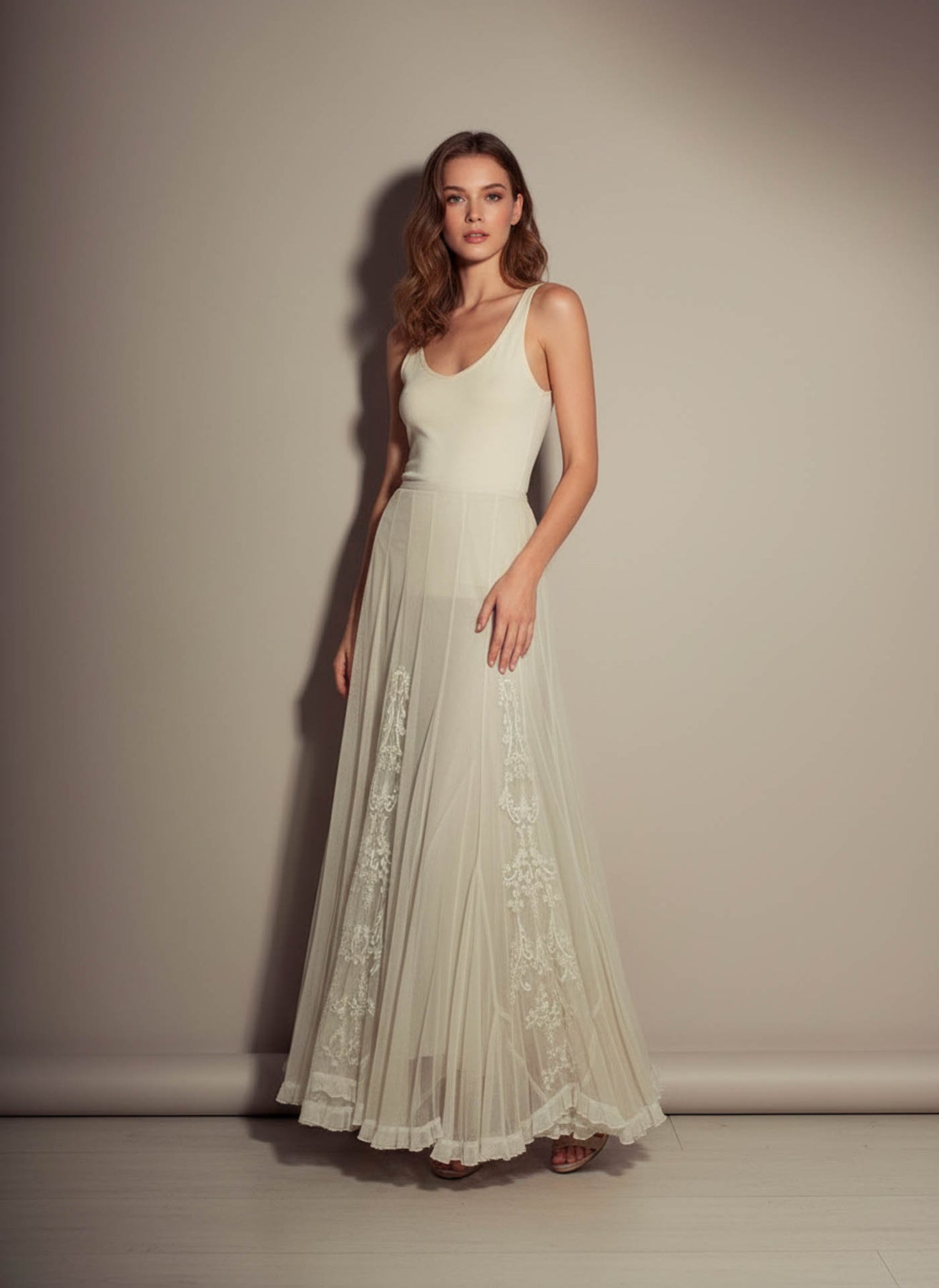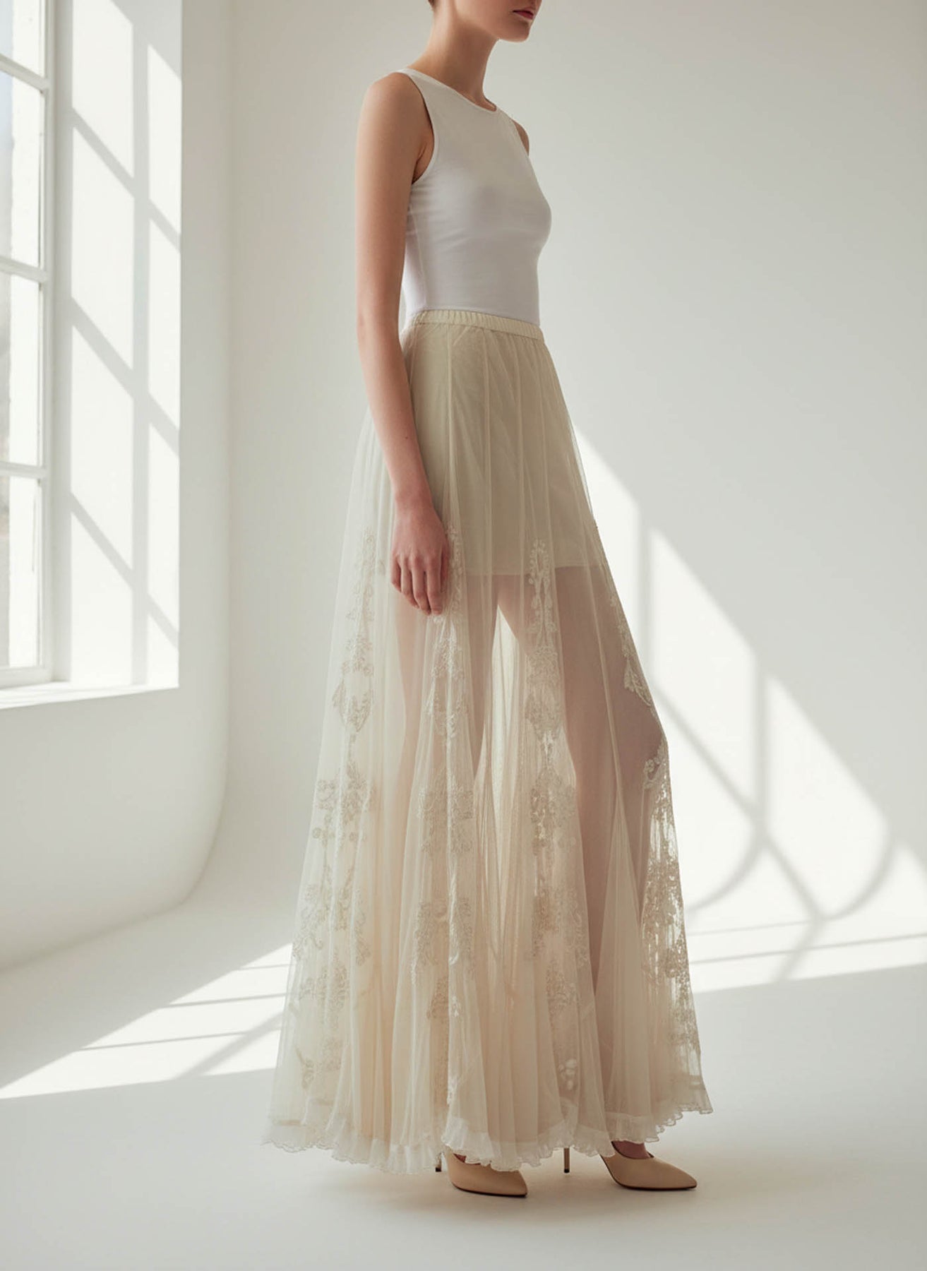 Falda Nude de tul Bordada