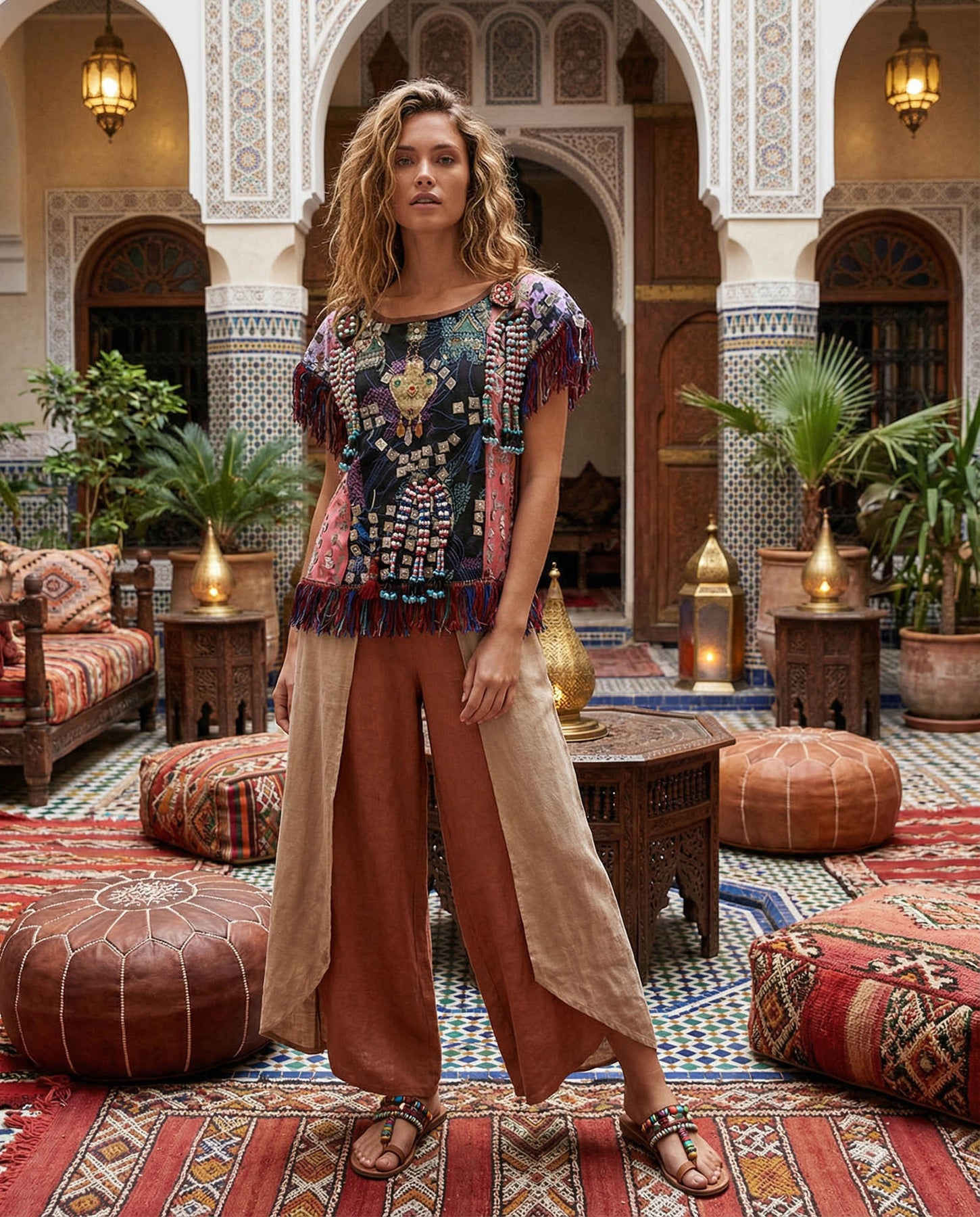Top Étnico original de Tete by Odet .Confeccionado en diferentes tejidos y con aplicaciones originales de Pakistán. Equivale a una 38/40