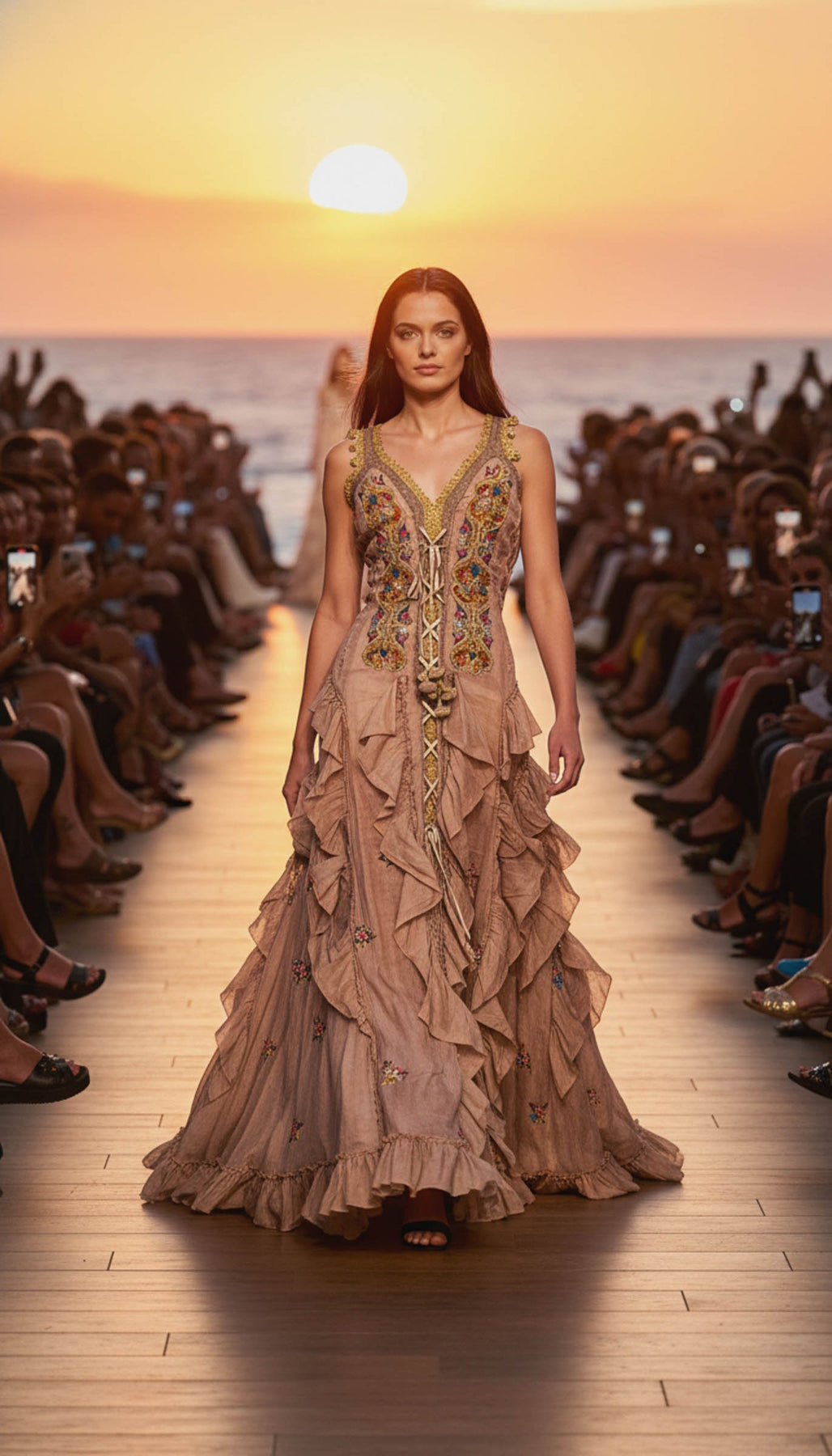 Perfecto como vestido de invitada boho, para celebraciones especiales o para quienes buscan un look femenino con un toque dorado muy especial.