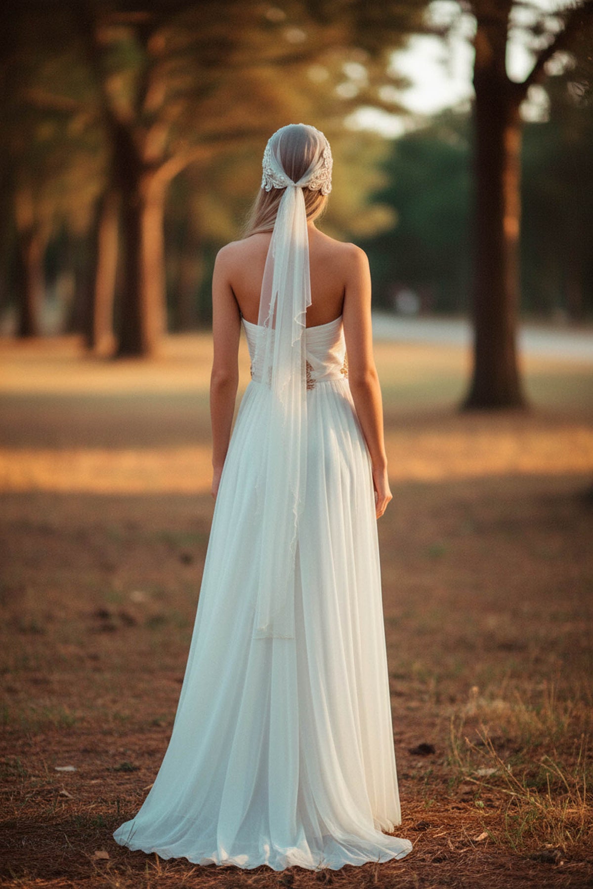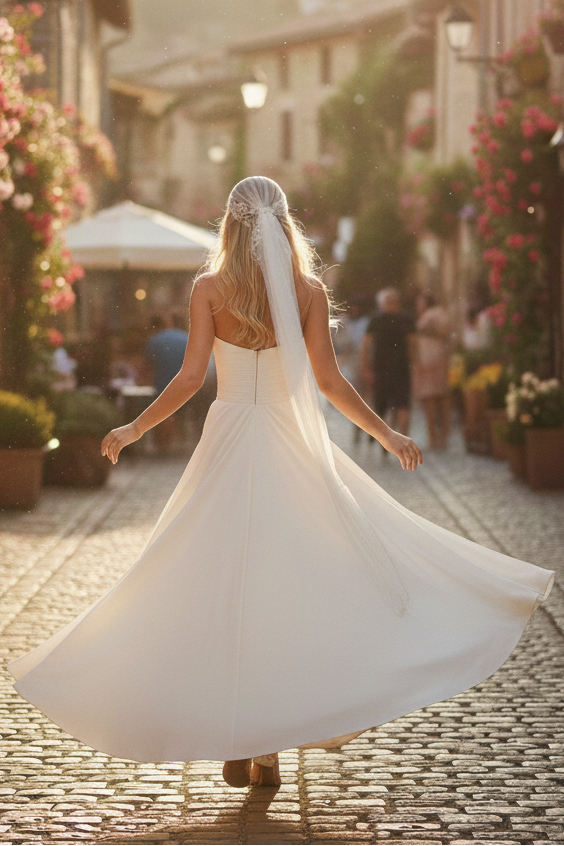 Pieza de producción limitada, pensada para novias que buscan un vestido exclusivo, luminoso y especial para bodas al aire libre: jardín, masía o atardecer en la playa.