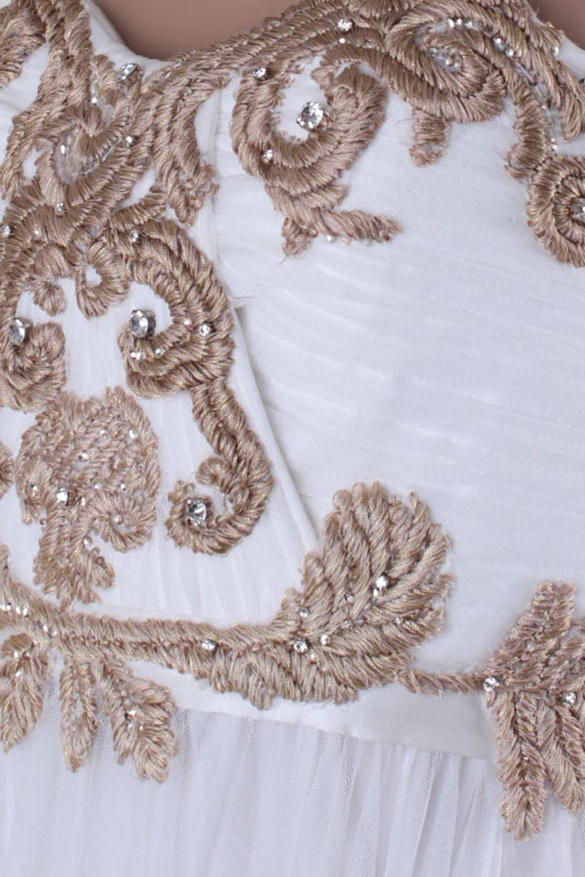• Cuerpo con bordados dorados manuales en relieve y cristales