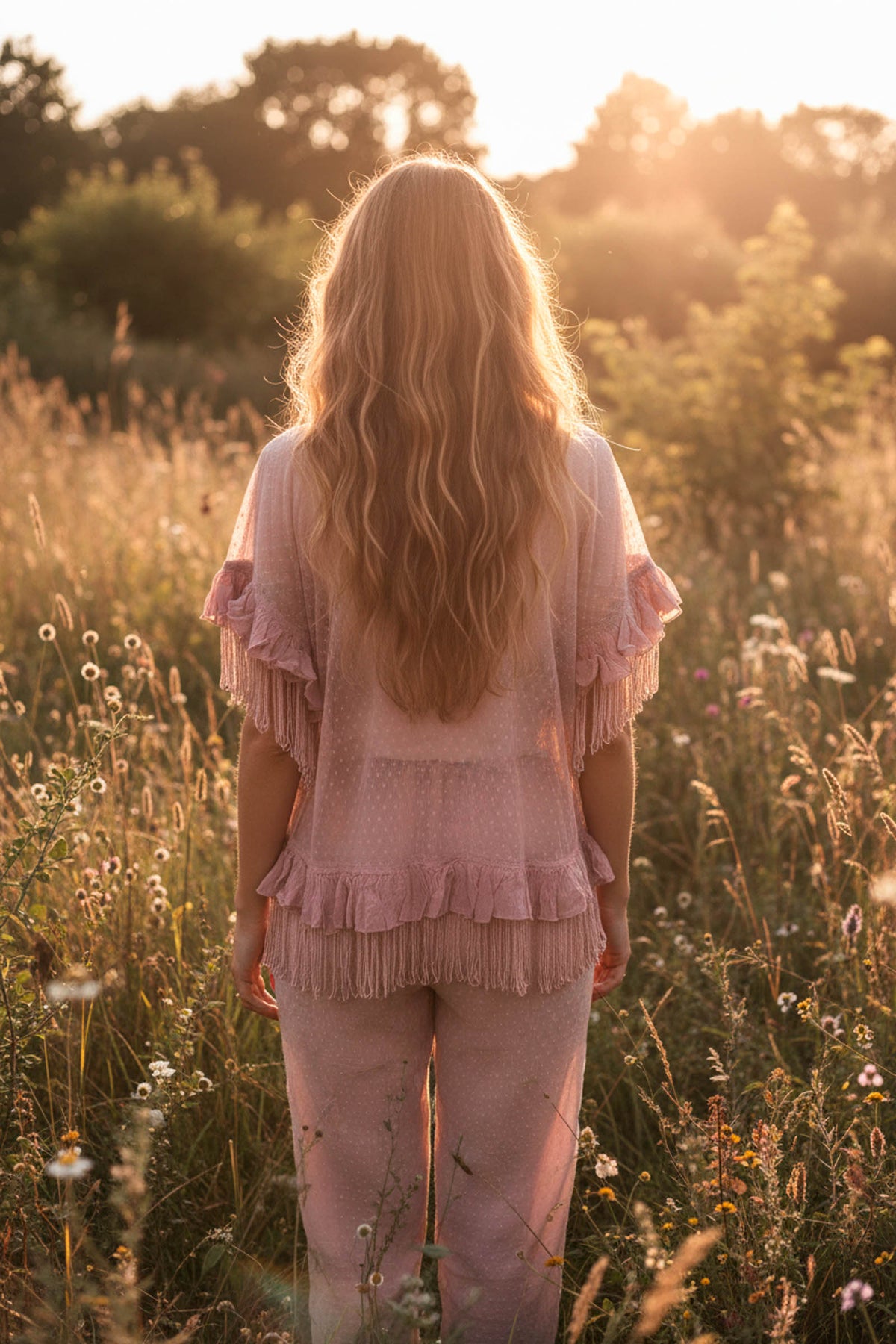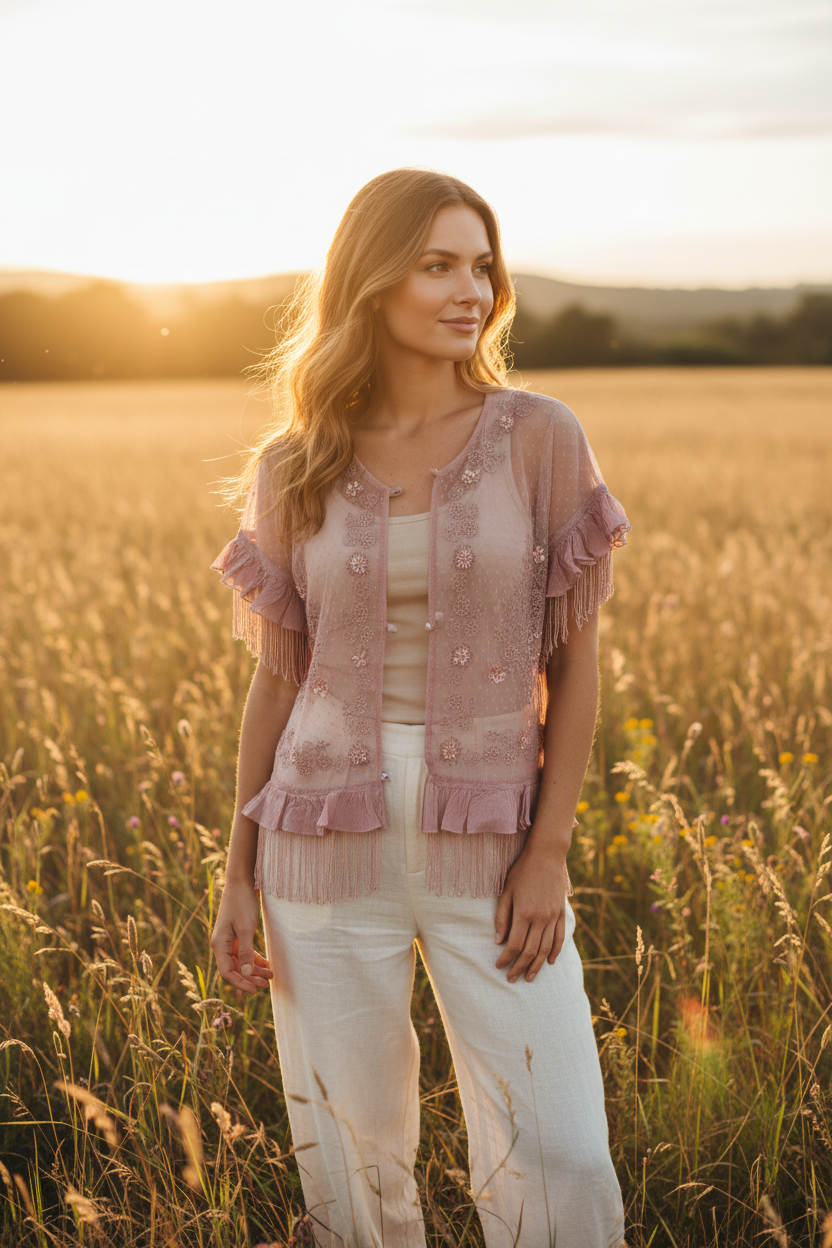 • Los flecos añaden movimiento y textura, creando una silueta sofisticada ideal para ocasiones especiales.