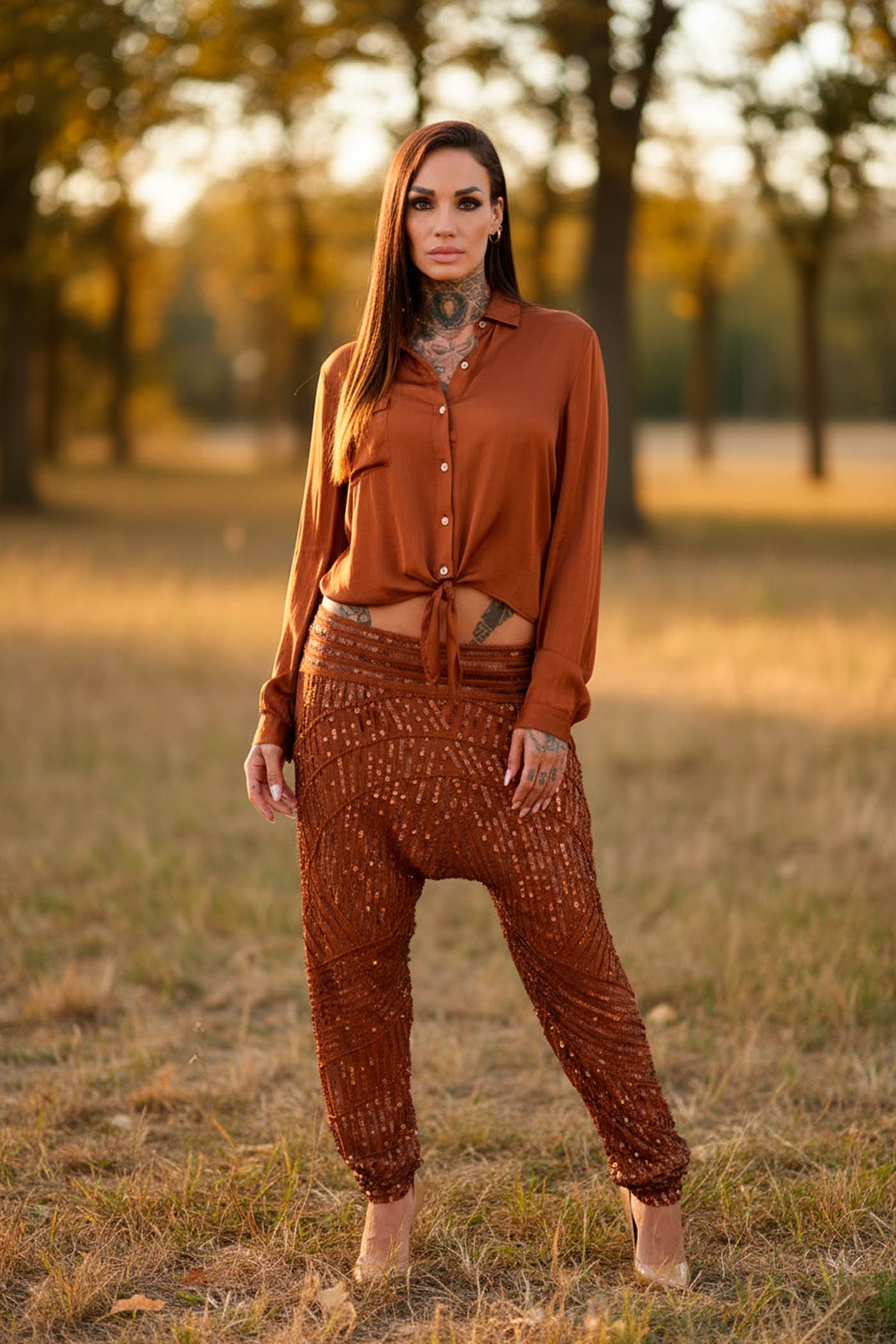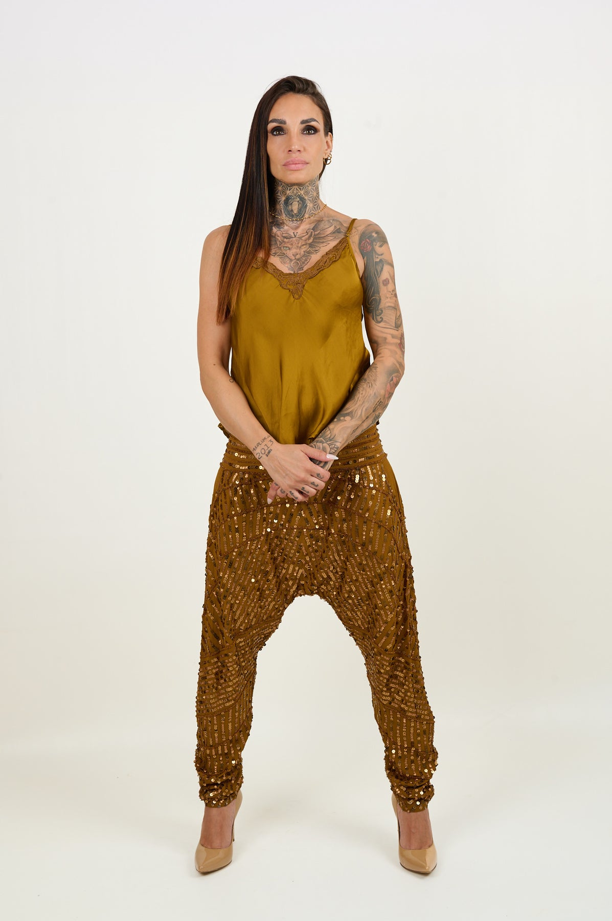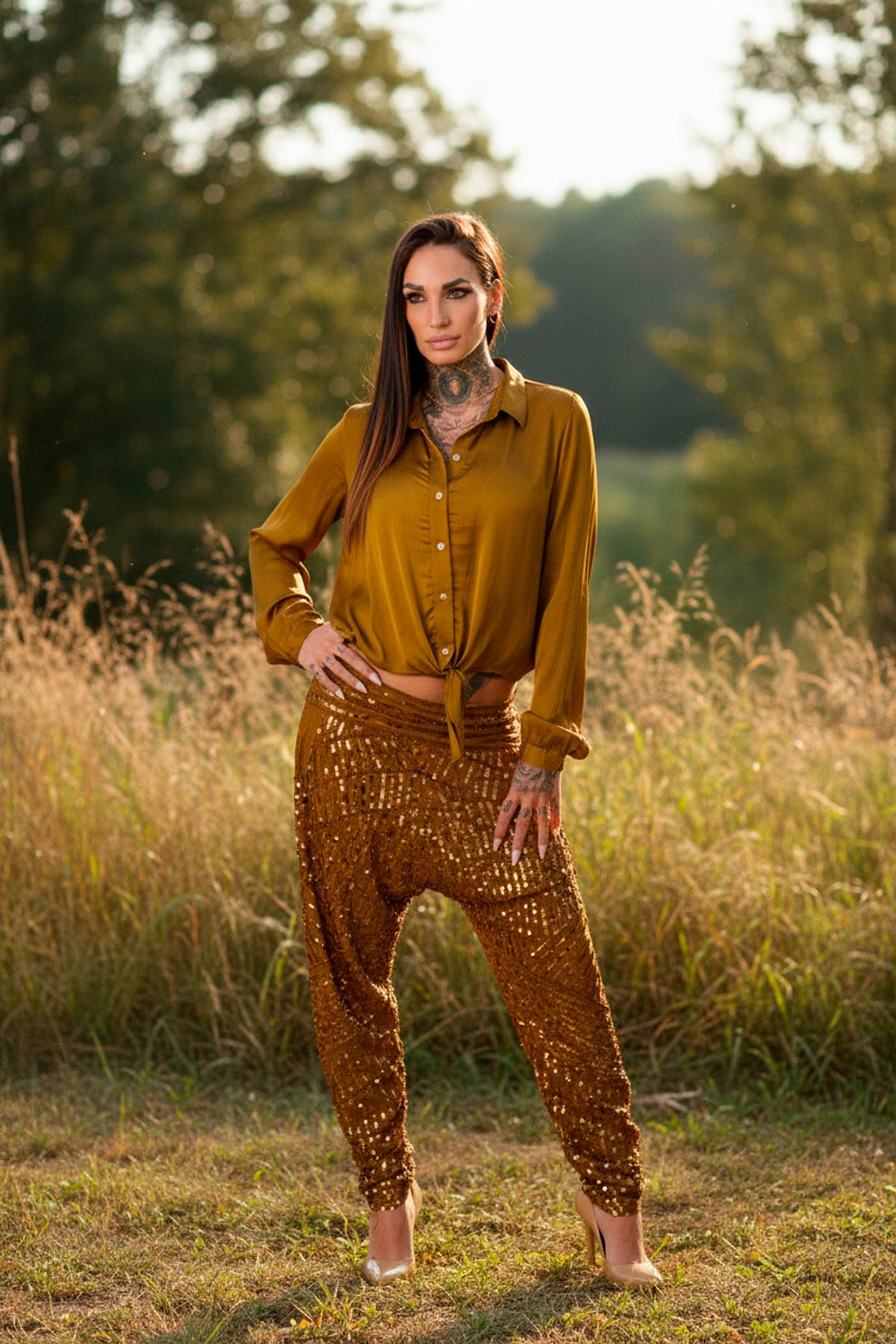 🏷️ Etiquetas: #PantalonSALOME #ModaEspañola #ArtesanalPremium #GeorgetteOro #LentejuelasDoradas #PantalonBaggy #ModaExclusiva #Samsara51