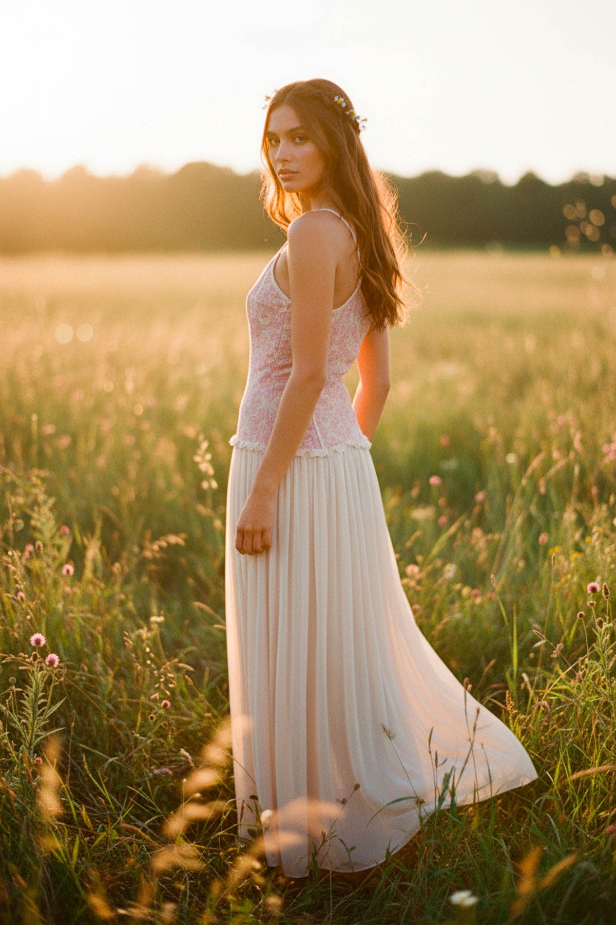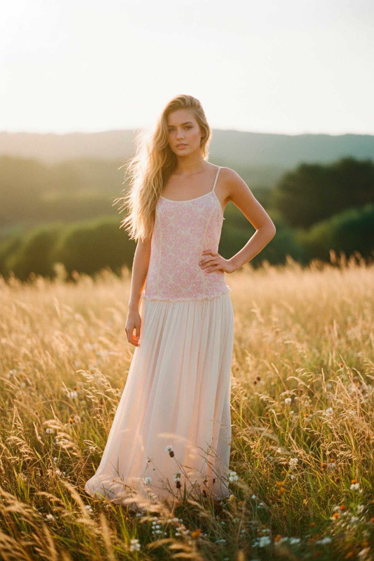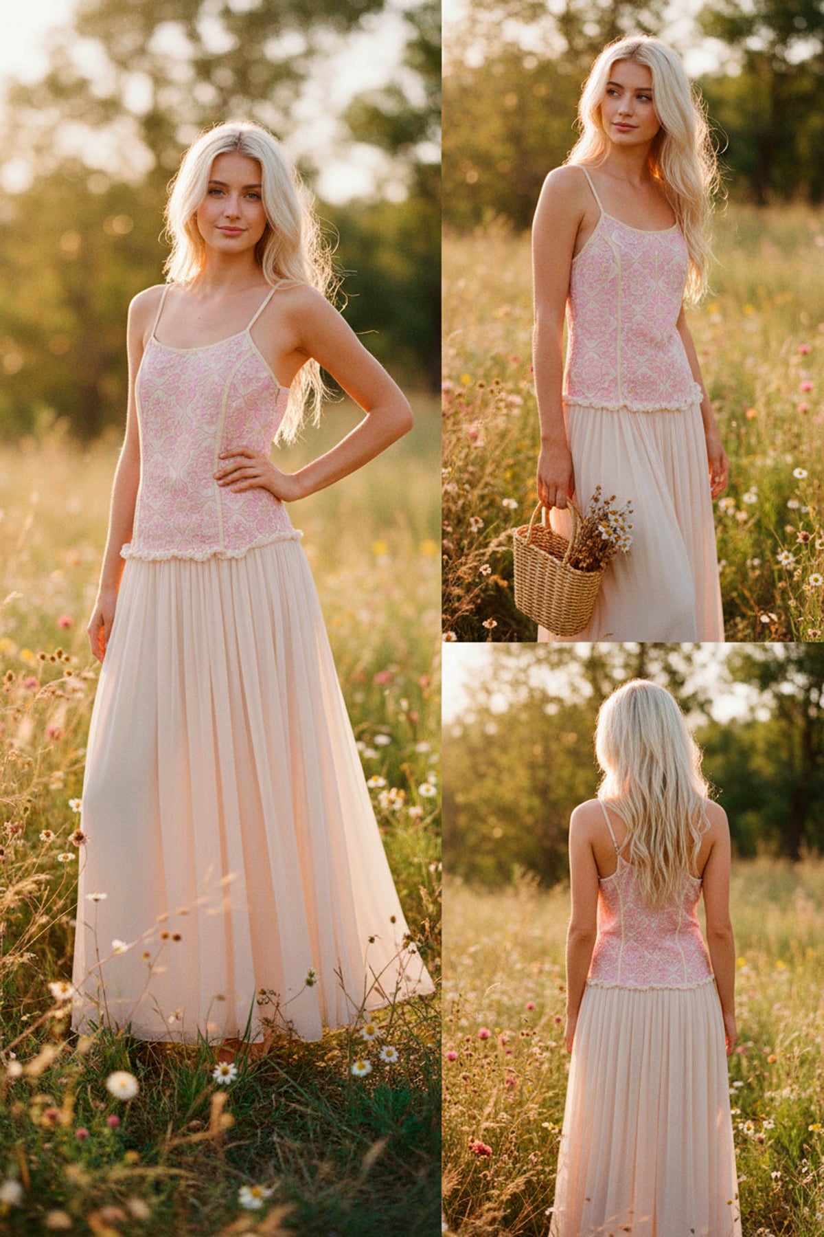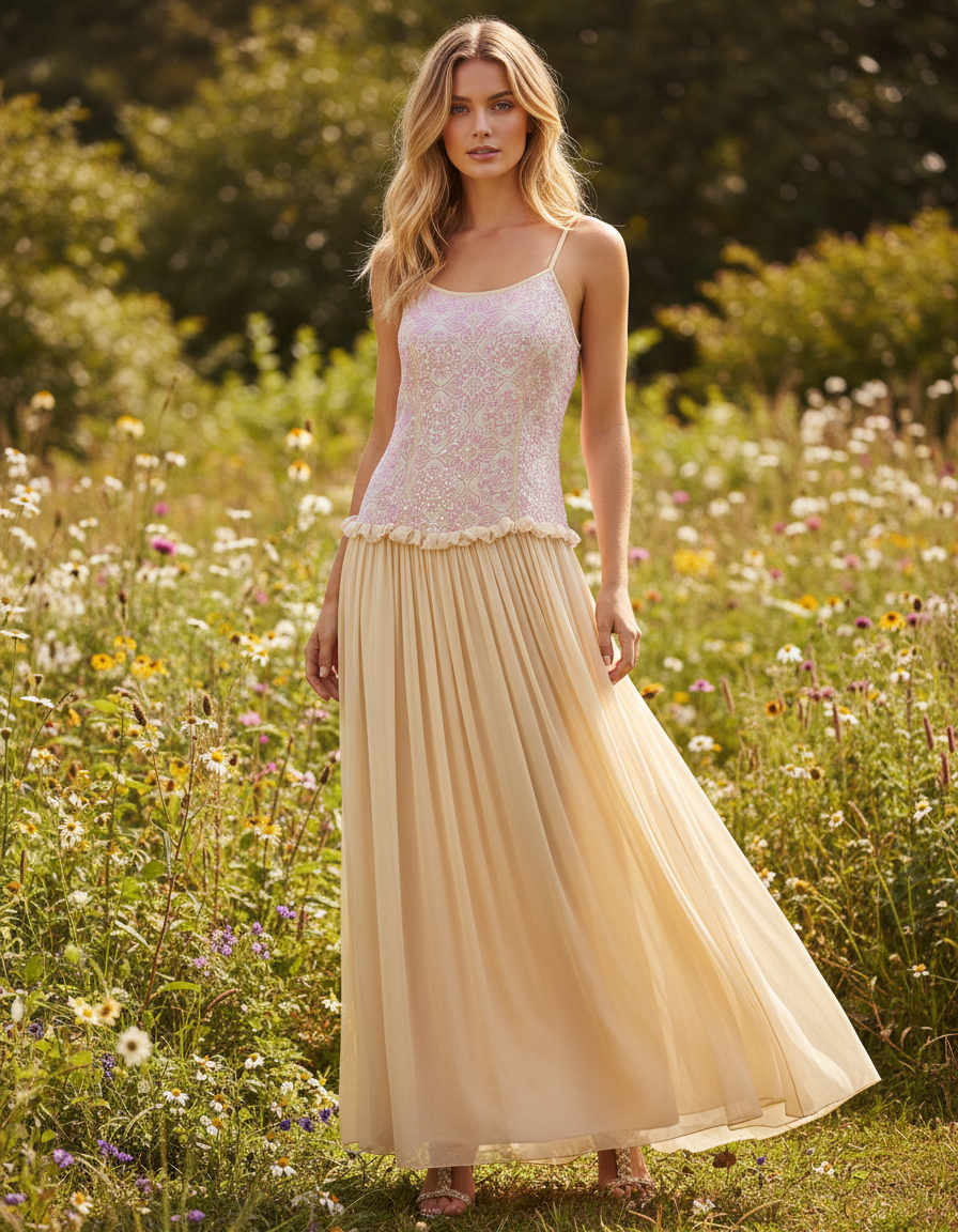 VESTIDO CONFECCIONADO EN MODAL ( CUERPO) Y SEDA  ( FALDA). AJUSTABLE CREMALLERA LATERAL. cuerpo rosa falda nude